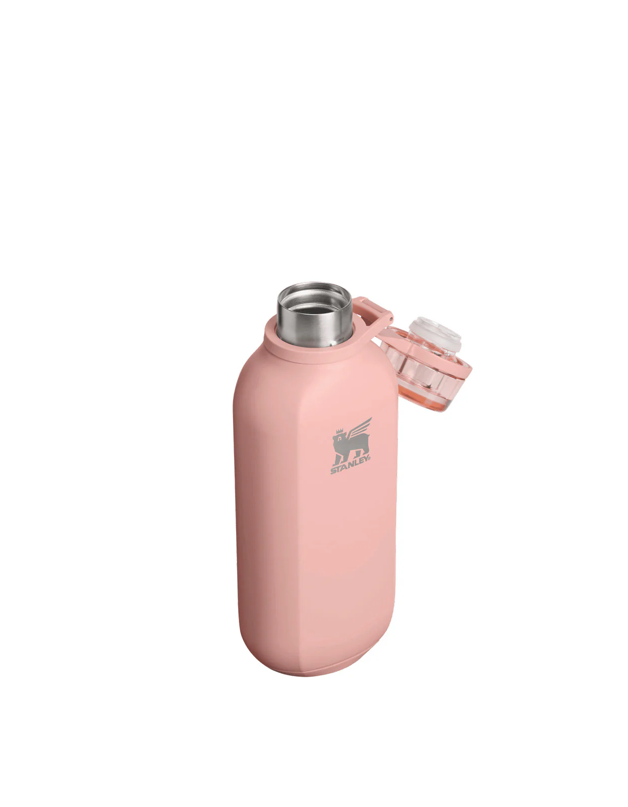 The 16-ounce Stanley Clutch Bottle keeps your drink ice cold for hours, thanks to non-round double-wall vacuum insulation. The drink area stays covered and clean, just spin off the tethered lid to sip. A soft footpad creates easy landings every time.